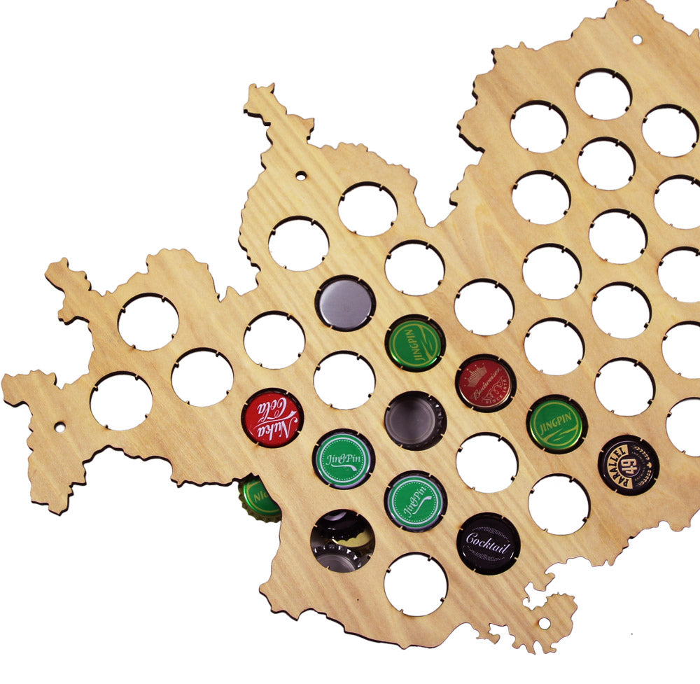 Certaines personnes aiment mettre des casquettes dans chaque état pour représenter une bière locale, tandis que d'autres aiment simplement remplir la carte avec la bière qu'ils ont autour. Peu importe. Le plaisir est de boire de la bière et de remplir cette belle pièce d'art mural de la bière.
