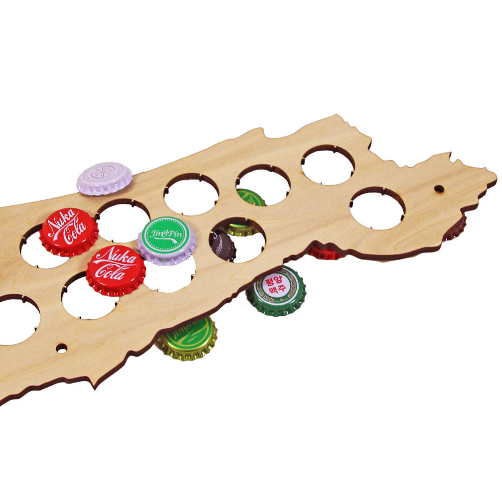 Certaines personnes aiment mettre des casquettes dans chaque état pour représenter une bière locale, tandis que d'autres aiment simplement remplir la carte avec la bière qu'ils ont autour. Peu importe. Le plaisir est de boire de la bière et de remplir cette belle pièce d'art mural de la bière.