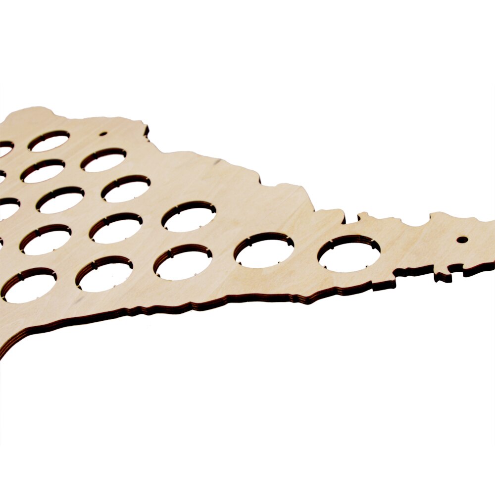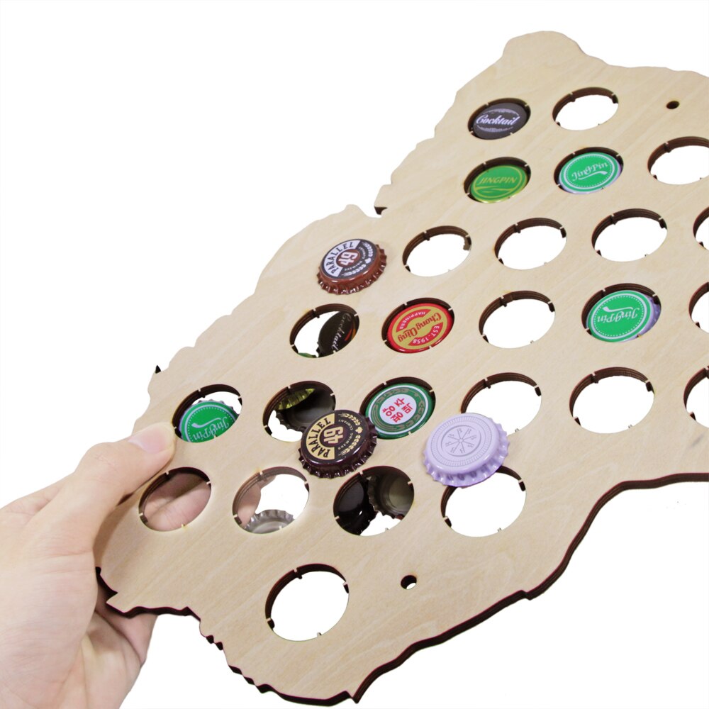 Certaines personnes aiment mettre des casquettes dans chaque état pour représenter une bière locale, tandis que d'autres aiment simplement remplir la carte avec la bière qu'ils ont autour. Peu importe. Le plaisir est de boire de la bière et de remplir cette belle pièce d'art mural de la bière.