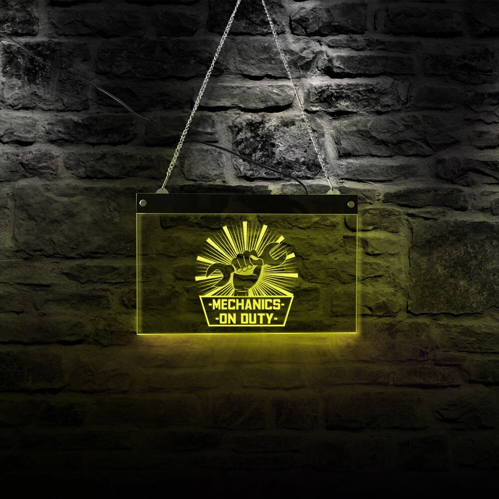 Mécanique en Service LED enseigne au néon Garage Logo entreprise éclairage signe main tenant clé voiture réparation Service lampe décorative