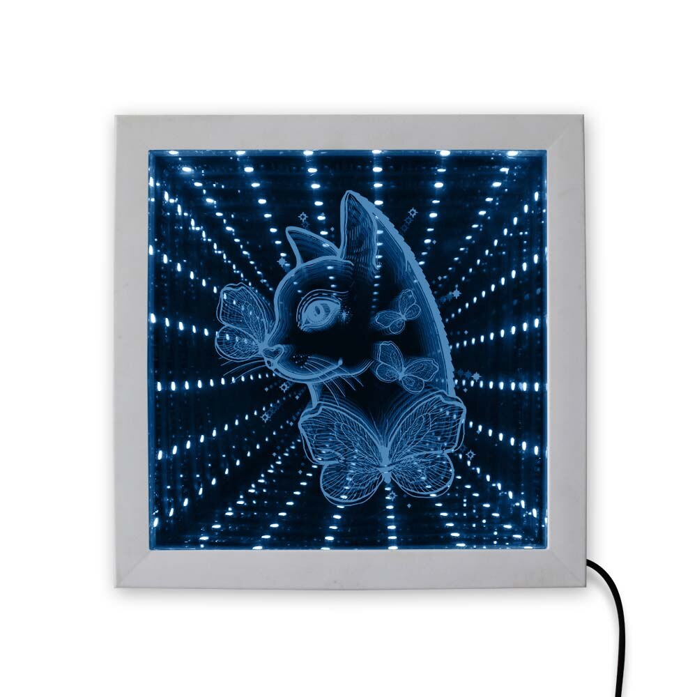 Chat avec papillon LED à couleur changeante Infinity miroir cadre chat amant cadeau chat Portrait envoûtant Illusion salon décor