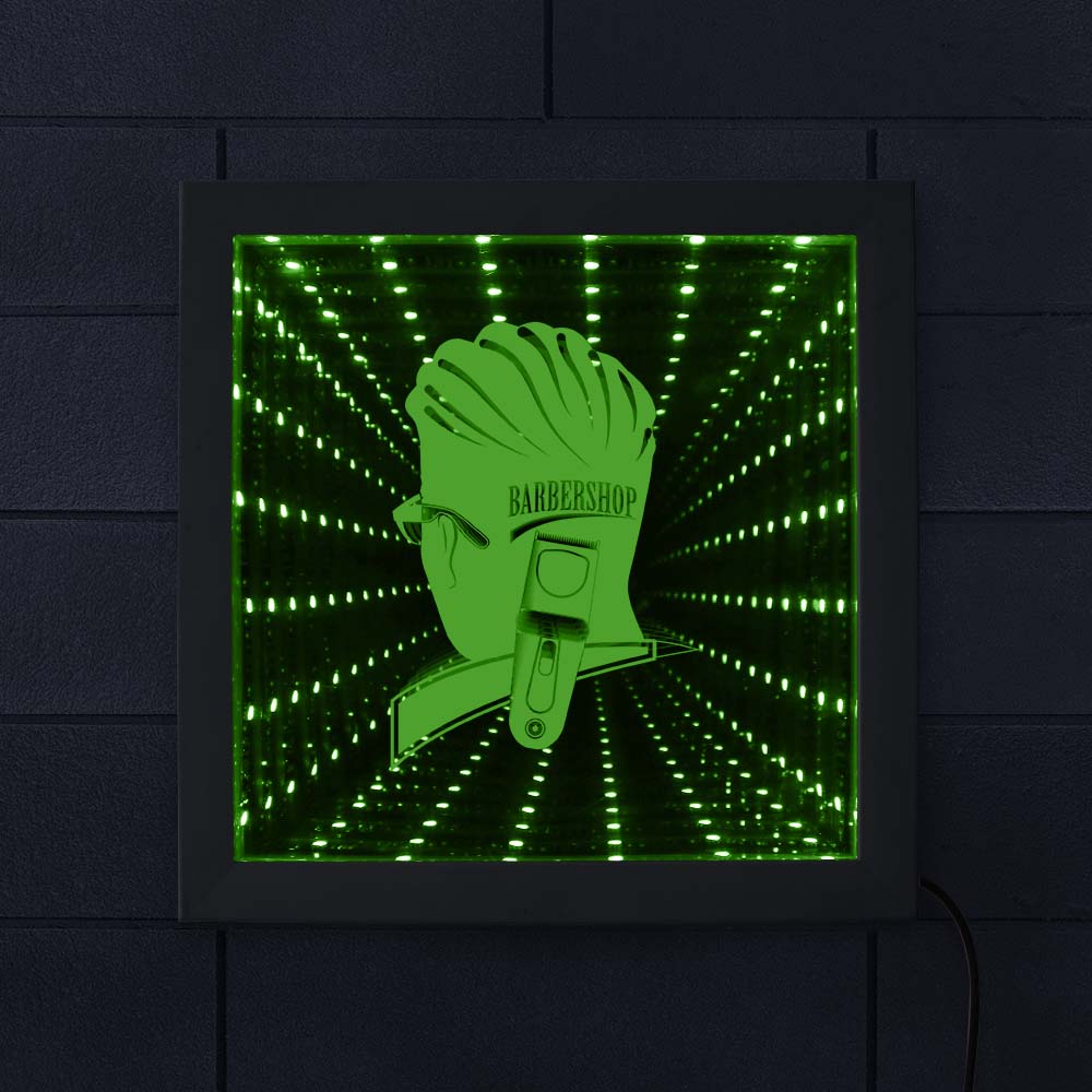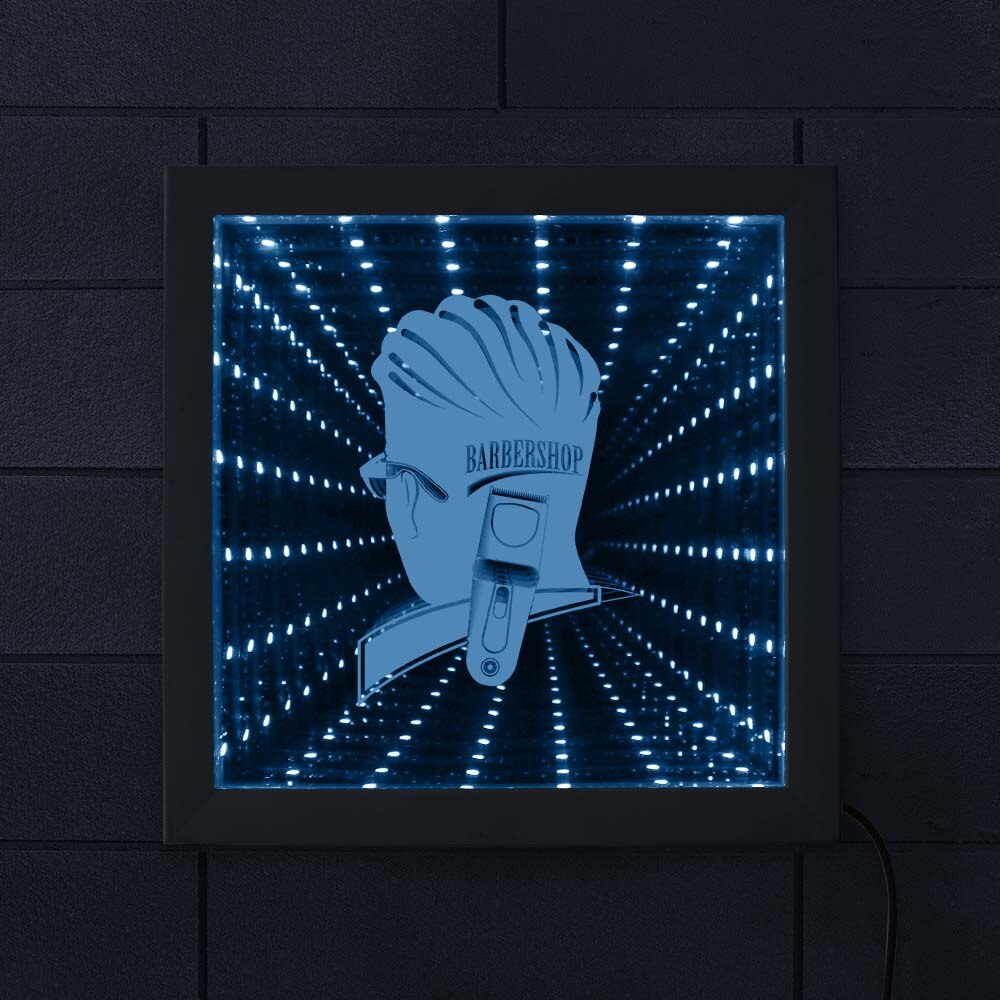Salon de coiffure signe de coiffeur éclairé œuvre LED miroir infini néon lumière optique Illusion lampe Tunnel salon de coiffure cadeau de coiffeur