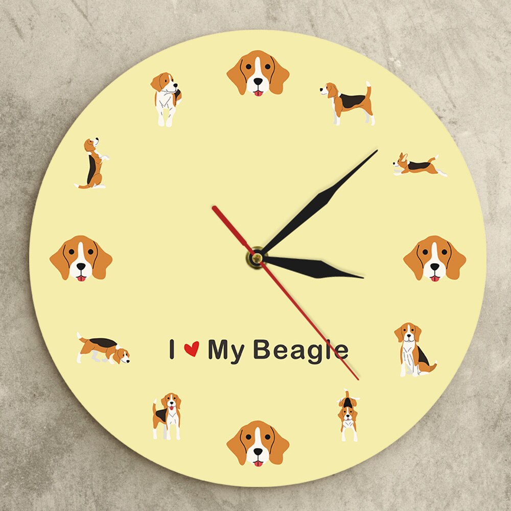 J'adore mon Beagle dessin animé horloge murale anglais Beagle chiot chien Art mural horloge Quartz silencieuse montre murale Beagle maman Pet amant cadeau