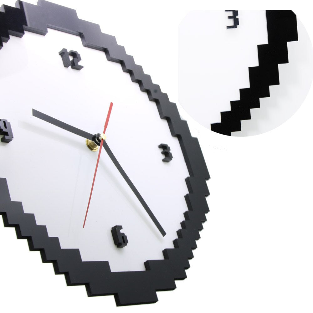 Pixel horloge 8 bits Style rétro Pixel horloge murale noir et blanc Jaggy vieux Pixels pixélisé analogique décor à la maison cadeau pour Geeks
